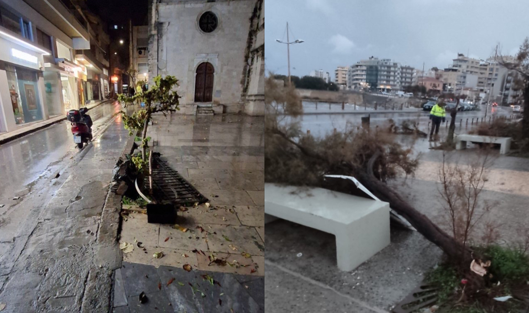 Στο «έλεος» των ανέμων το Ηράκλειο – Πτώσεις δέντρων μετά την κακοκαιρία (Φωτογραφίες)