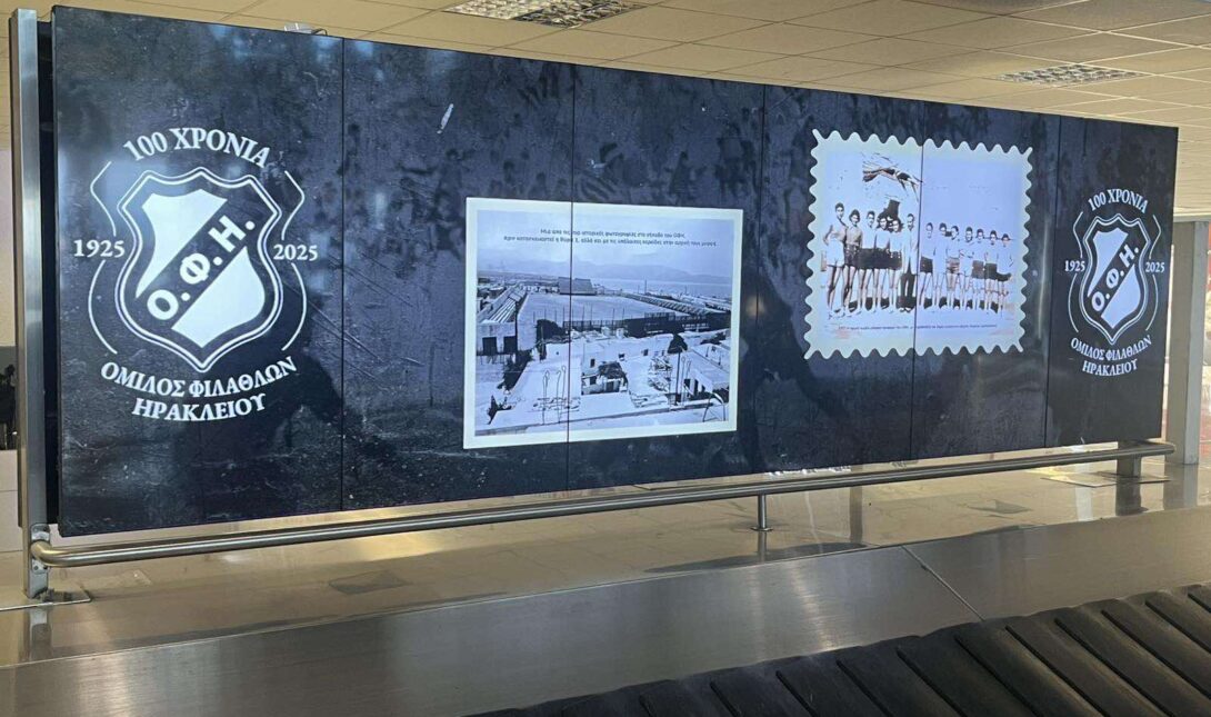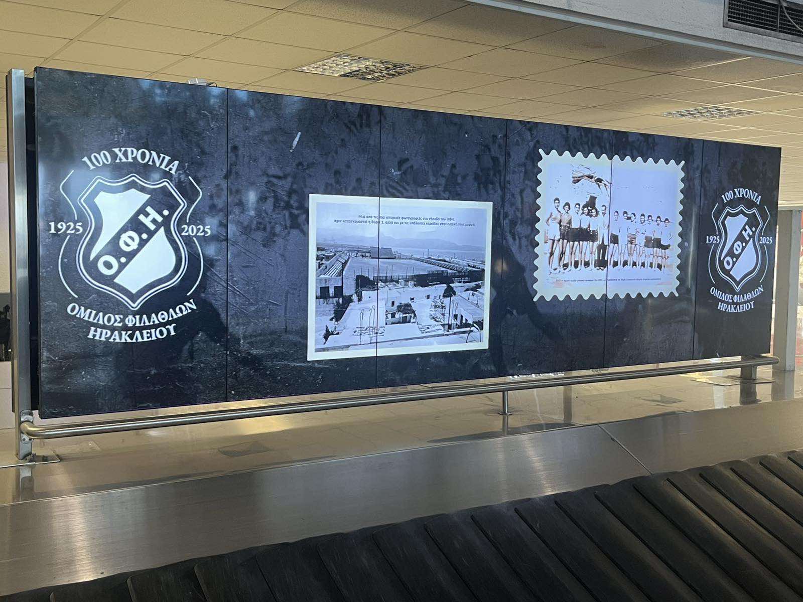 Με ενέργειες του Ερασιτέχνη ΟΦΗ, εδώ και αρκετές ημέρες στις οθόνες του αεροδρομίου Νίκος Καζαντζάκης του Ηρακλείου, στην αίθουσα αφίξεων, προβάλλονται ιστορικές φωτογραφίες, από τα 100 χρόνια του ΟΦΗ.