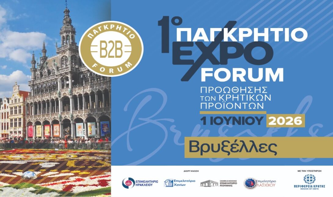 Το 1ο Παγκρήτιο expo-Forum στις Βρυξέλλες διοργανώνεται από τα Επιμελητήρια της Κρήτης με κοινό στόχο την προώθηση των κρητικών προϊόντων