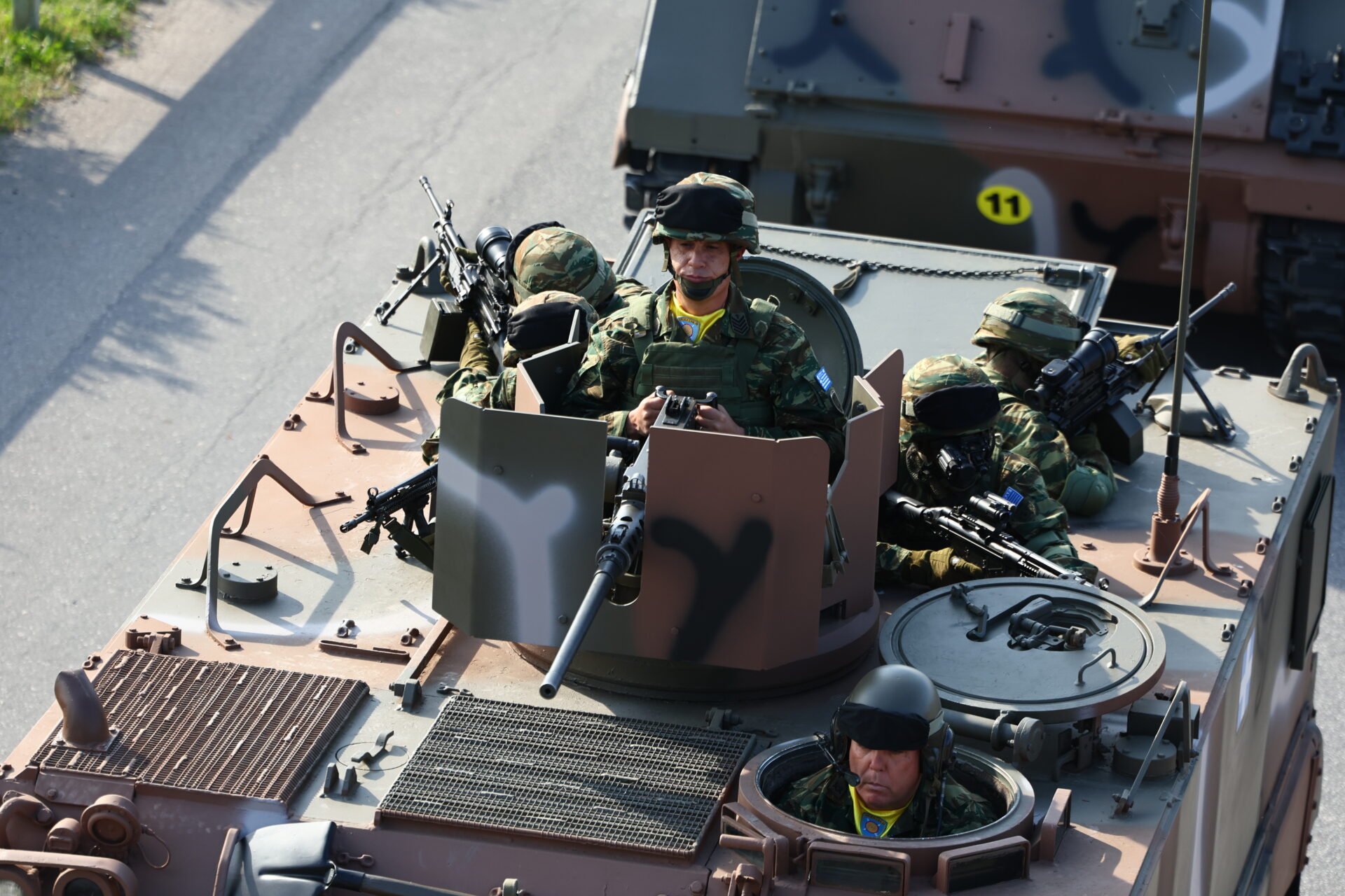 Η εθνική οδός Μουδανιών-Θεσσαλονίκης γέμισε από άρματα μάχης