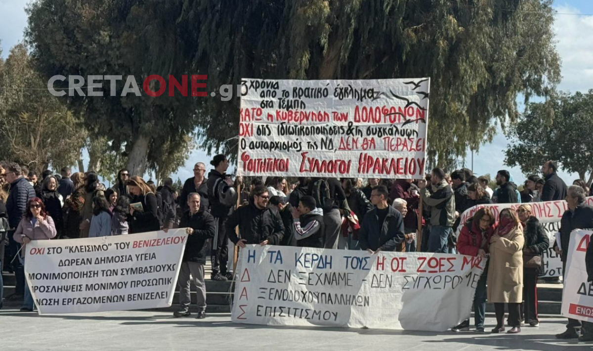 - Τρία χρόνια μετά την τραγωδία των Τεμπών, πλήθος κόσμου συγκεντρώθηκε στην Πλ. Ελευθερίας στο Ηράκλειο ζητώντας δικαιοσύνη.