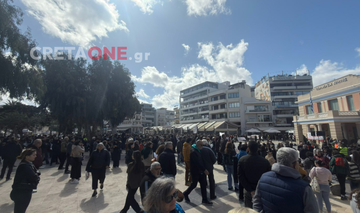 Η πλατεία έχει γεμίσει από πολίτες που ζητούν δικαιοσύνη για την τραγωδία στην κοιλάδα των Τεμπών, εκφράζοντας τη στήριξή τους στις οικογένειες των θυμάτων. Παράλληλα, αντίστοιχες συγκεντρώσεις έχουν προγραμματιστεί και στις άλλες μεγάλες πόλεις της Κρήτης, αλλά και όλης της χώρας, με το μήνυμα να παραμένει κοινό και ηχηρό.