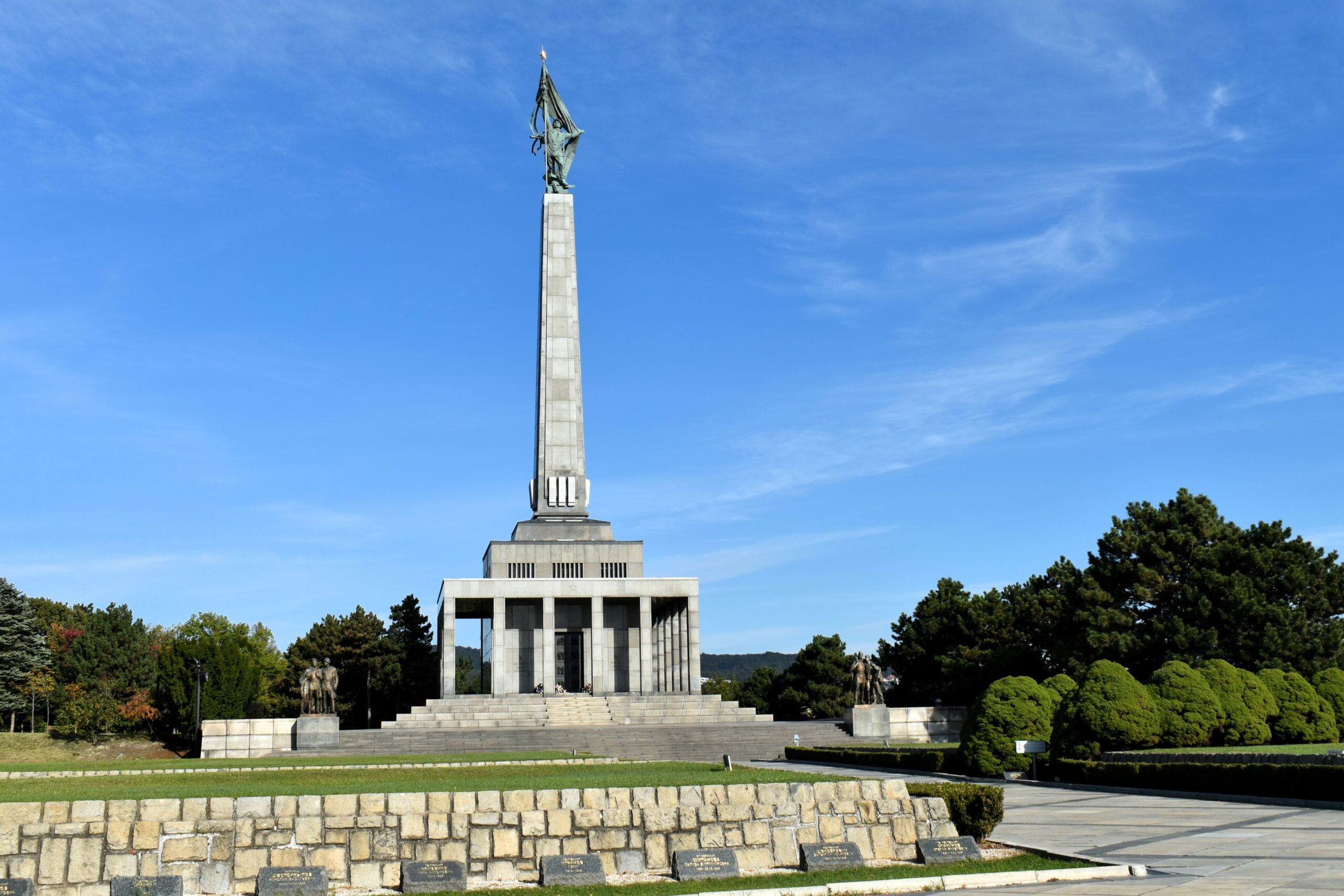 Μνημειωδών διαστάσεων και ορατό σχεδόν από κάθε σημείο της πόλης, το μνημείο Slavín αναμετράται στον ορίζοντα με το Κάστρο απέναντί του και μνημονεύει την απελευθέρωση της Μπρατισλάβα από τον Κόκκινο Στρατό τον Απρίλιο του 1945. Η κλίμακα του μπρουταλιστικής αρχιτεκτονικής μνημείου, το οποίο αποτελεί τόπο ταφής 6.845 Σοβιετικών στρατιωτών που έχασαν τη ζωή τους στις μάχες εντός και γύρω από την πόλη τις τελευταίες εβδομάδες πριν το τέλος του Β’ Παγκοσμίου Πολέμου, είναι θεαματική: και μόνο η κεντρική στήλη έχει ύψος πάνω από 39 μέτρα, ενώ φέρει επιπρόσθετα στην κορυφή της το φιλοτεχνημένο από τον Alexander Trizuljak άγαλμα ενός Σοβιετικού στρατιώτη που κρατά τη σημαία της νίκης, φτάνοντας τελικά τα 52 μέτρα ύψος.