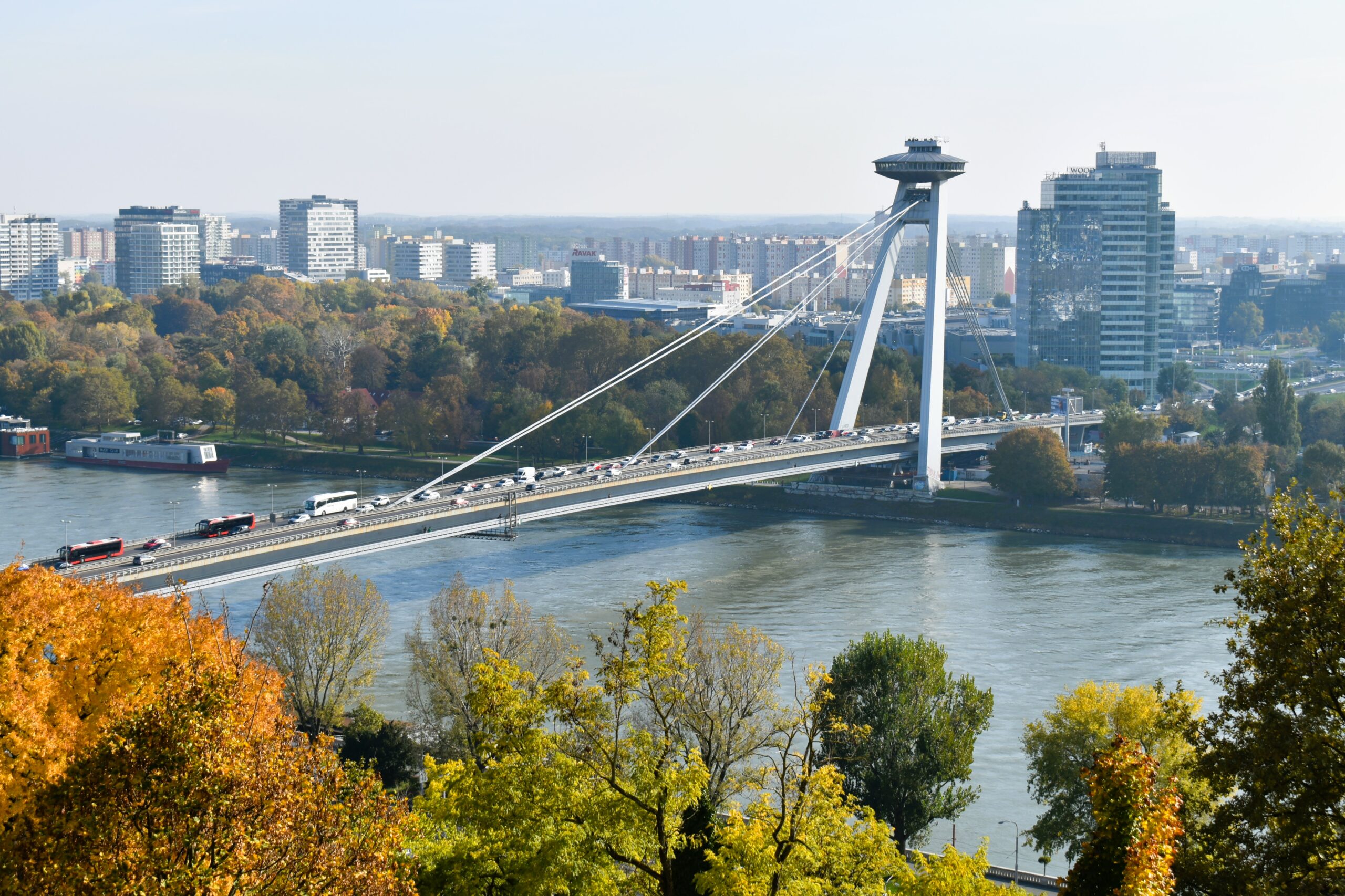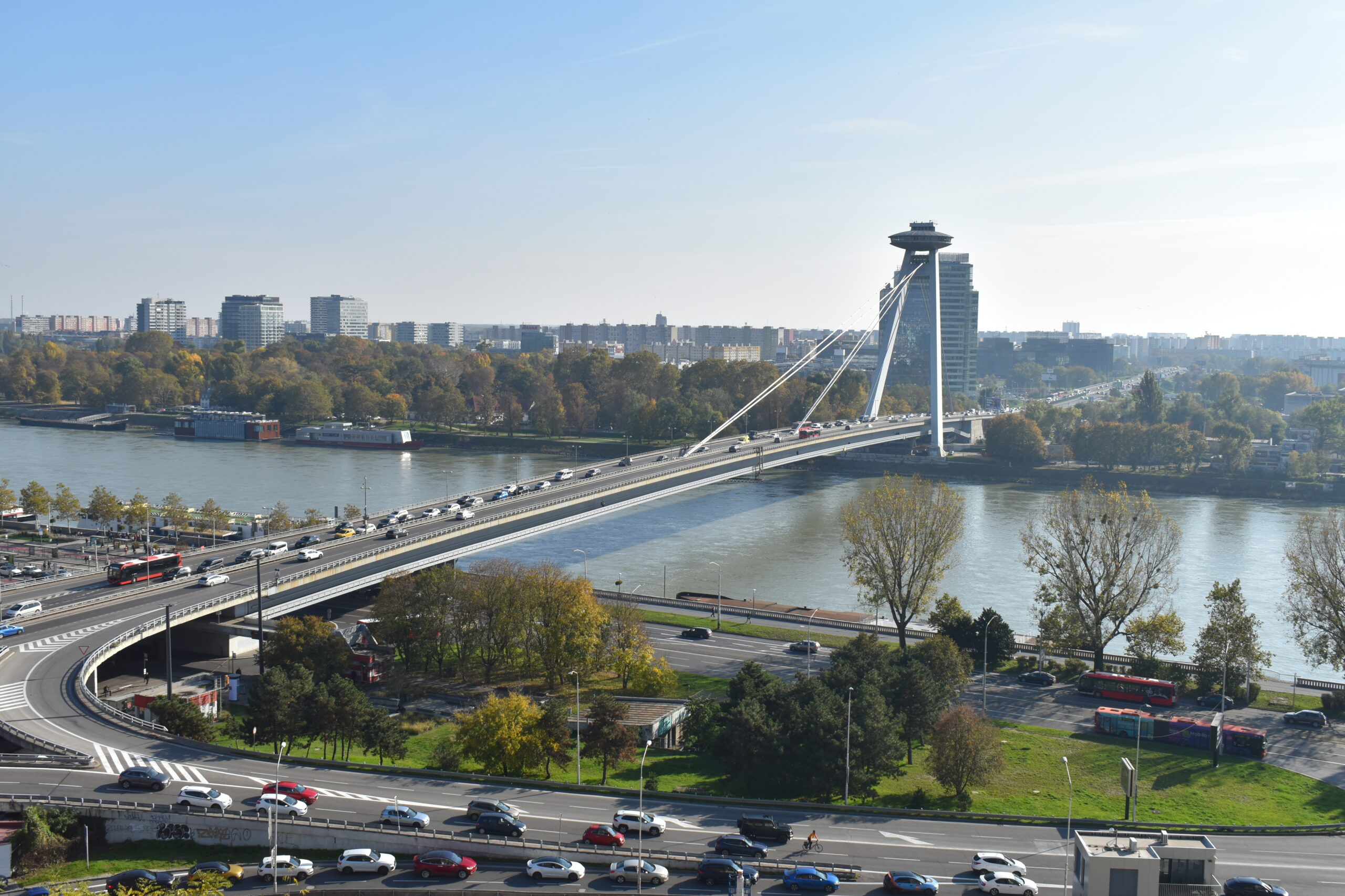 Η παρουσία του Δούναβη κάθε άλλο περνά απαρατήρητη στη Μπρατισλάβα που χτισμένη καθώς είναι στο πρώτο από τα τρία μέρη του, απολάμβανε την εμπορική ανάπτυξη που προσέφερε η δίοδος μέσω του ποταμού στη Γερμανία και την Αυστρία. Ωστόσο, ως το 1972 τον διάσημο ποταμό διέσχιζε μόνο μία γέφυρα, ώσπου η φουτουριστική σιλουέτα της «Νέας Γέφυρας» ήρθε να ενώσει τις δύο όχθες με τα 431 μέτρα του μήκος της. Η ατσάλινη γέφυρα Most SNP όπως επισήμως ονομάζεται, αν και δεν τυγχάνει του θαυμασμού όλων, είναι σίγουρα μια εντυπωσιακή κατασκευή, η μακρύτερη παγκοσμίως που φέρει μόνο έναν πυλώνα. Ιδιαίτερα Avant-garde για την εποχή της, χτίστηκε μεταξύ 1967-1972 και η κατασκευή που θυμίζει ιπτάμενο δίσκο στην κορυφή του πυλώνα της, σε ύψος 95 μέτρων, στεγάζει το παρατηρητήριο UFO και ένα από τα καλύτερα γκουρμέ εστιατόρια της Σλοβακίας με το ίδιο όνομα.