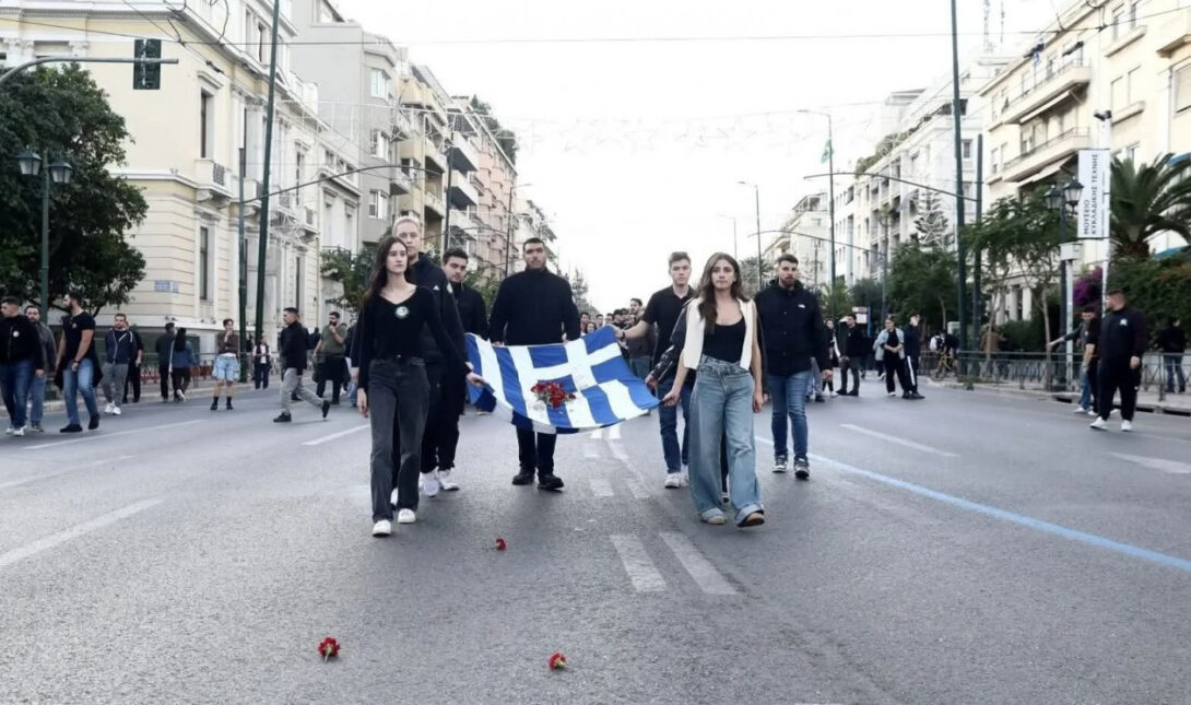 H κόρη της Φώφης Γεννηματά και του Ανδρέα Τσούνη, κράτησε την ελληνική αιματοβαμμένη σημαία στην πορεία για την 52η επέτειο του Πολυτεχνείου.