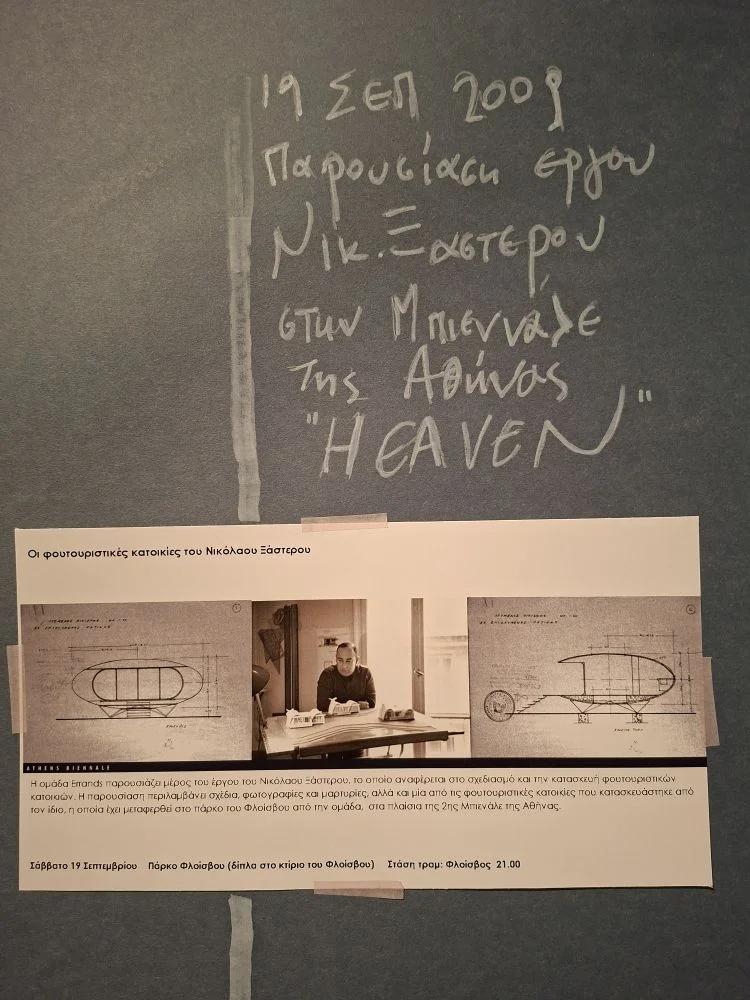 Ο Νικόλας Ξάστερος, Έλληνας πρωτοπόρος σκηνοθέτης, σπούδασε Αρχιτεκτονική στην Ecole des Beaux Arts στο Παρίσι του ’50 και σχεδίασε τη δεκαετία του ’60 στην Ελλάδα μια σειρά προκατασκευασμένων φουτουριστικών κατοικιών σε σχήμα ούφο.