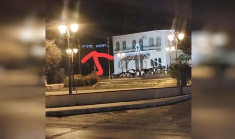 Την ώρα που όλοι περίμεναν τα κλασικά χριστουγεννιάτικα λαμπάκια και τις γιορτινές επιγραφές, στην πρόσοψη της Μητρόπολης άναψε η φωτεινή φράση «Χριστός Ανέστη», προκαλώντας γέλιο και απορία σε όσους περνούσαν από το σημείο.