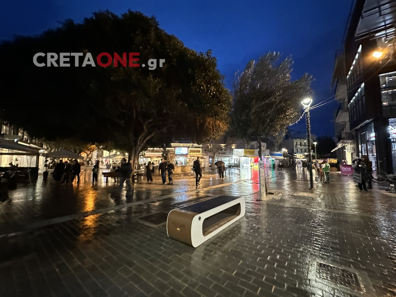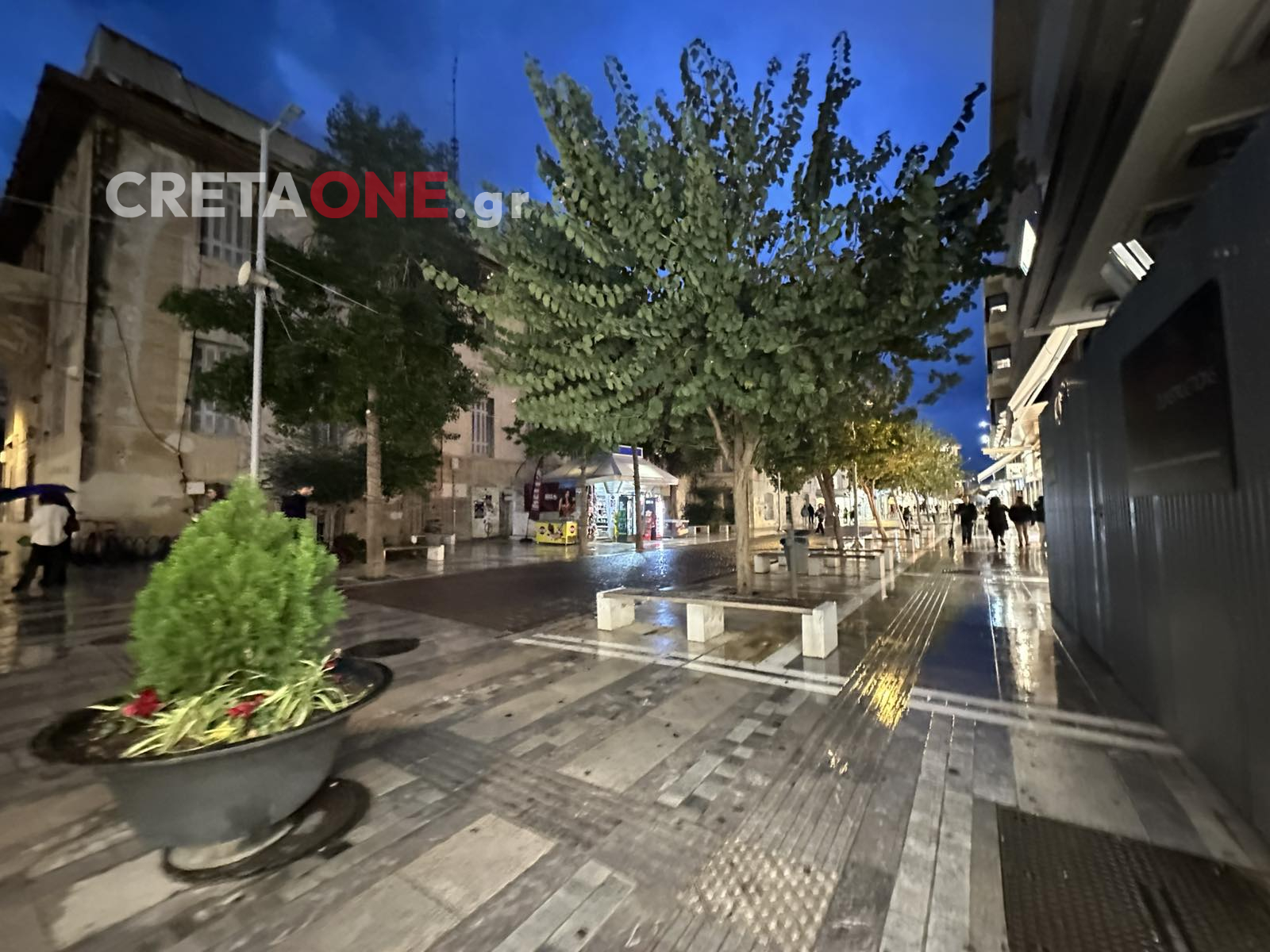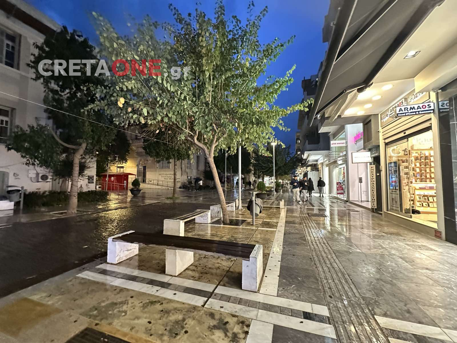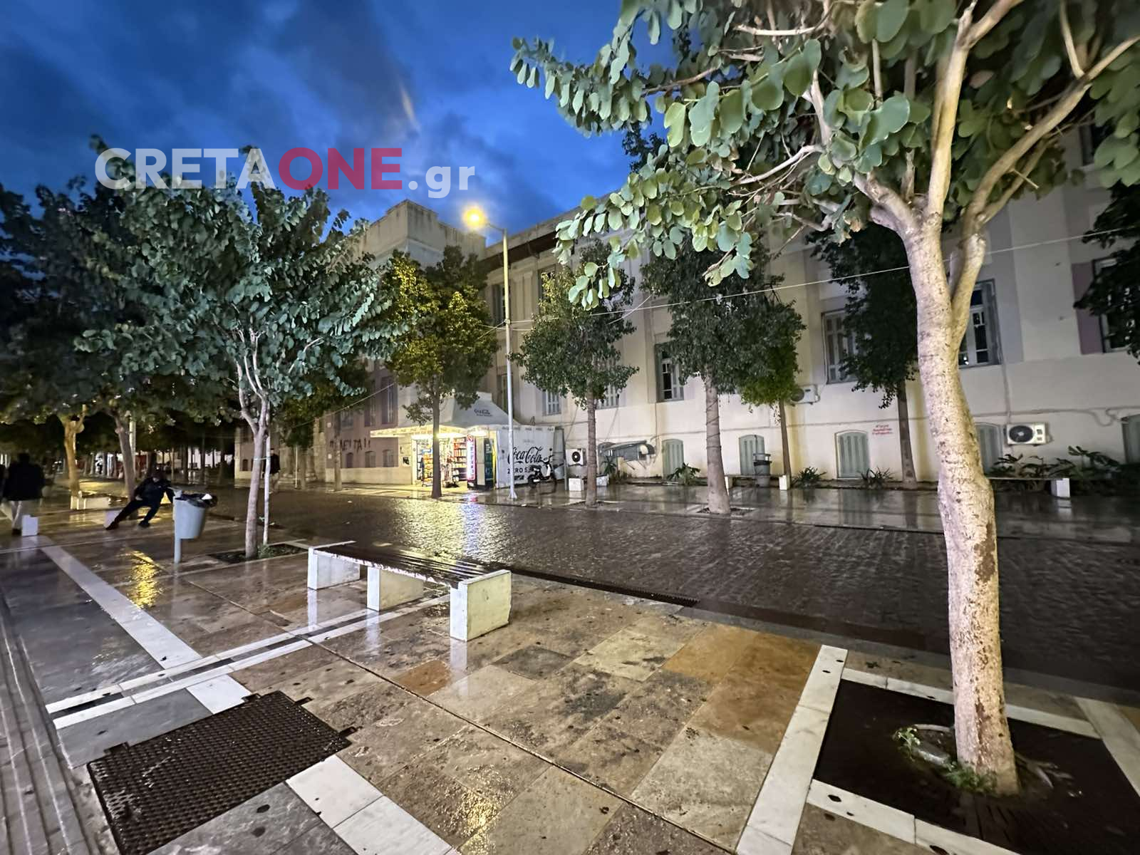 Η σημερινή Τσικνοπέμπτη στο Ηράκλειο ήταν τελείως διαφορετική από τα συνηθισμένα. Η έντονη βροχή κράτησε τους Ηρακλειώτες στα σπίτια τους, αφήνοντας ρο κέντρο της πόλης ασυνήθιστα άδειο.