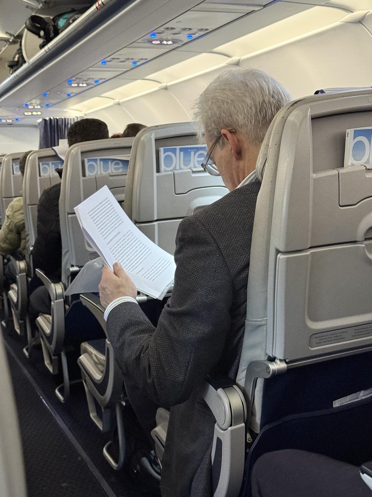 Τουλάχιστον αυτό υποψιάστηκαν όσοι τον είδαν εν πτήσει να «ξεφυλλίζει» τις σημειώσεις με ένταση μαθητή που πάει αδιάβαστος για προφορικά.