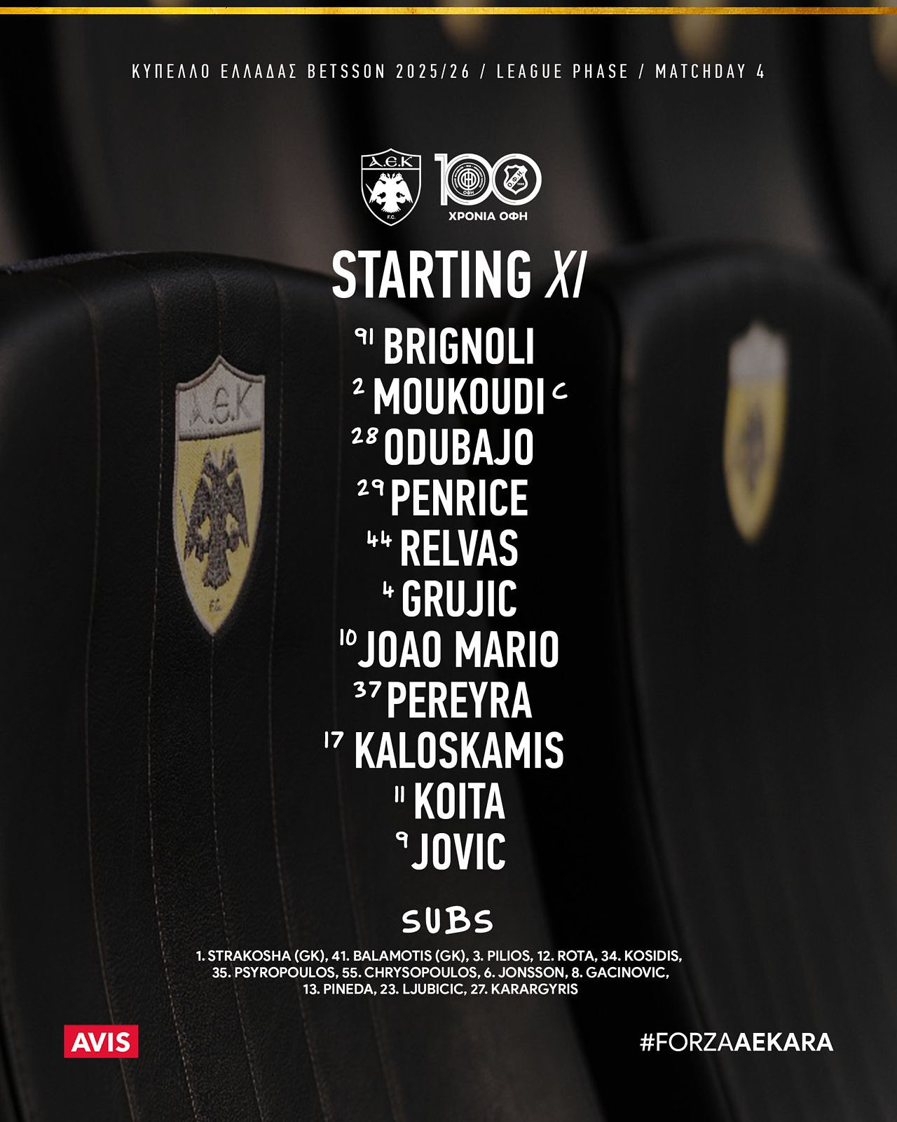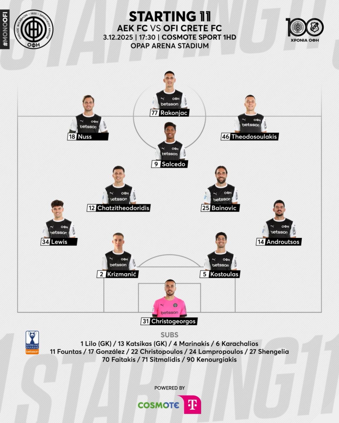 Ανακοινώθηκαν οι ενδεκάδες της αναμέτρησης ανάμεσα στην ΑΕΚ και τον ΟΦΗ στο πλαίσιο της 4ης αγωνιστικής της League Phase του Κυπέλλου Ελλάδας. Με αρκετές αλλαγές και οι δύο ομάδες.