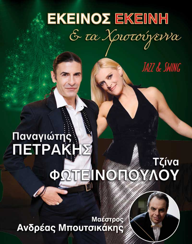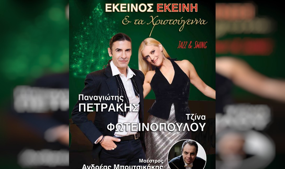 Στο εορταστικό πρόγραμμα ξεχωρίζει η συναυλία με τους Παναγιώτη Πετράκη και Τζίνα Φωτεινοπούλου με τίτλο «Εκείνος Εκείνη & τα Χριστούγεννα».