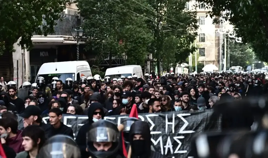 Η πορεία πραγματοποιήθηκε υπό τη στενή επιτήρηση διμοιριών των ΜΑΤ