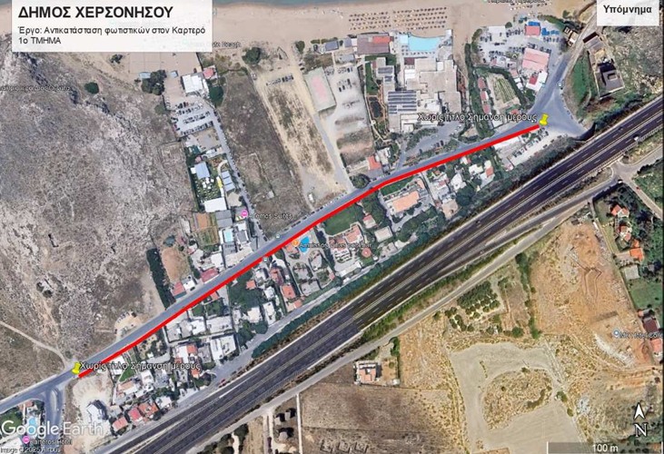 - Ο Δήμος Χερσονήσου προκήρυξε διαγωνισμό με προϋπολογισμό 213.000 ευρώ για την αντικατάσταση του δημοτικού φωτισμού σε μήκος 1.100 μέτρων.