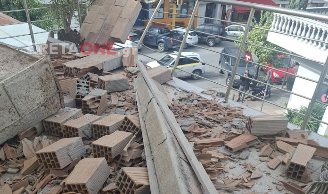 Το περιστατικό σημειώθηκε σε κεντρικό σημείο της Ν. Αλικαρνασσού, συγκεκριμένα στη συμβολή των οδών Ηροδότου και Δημοκρατίας. Τοίχος που υπήρχε στο μπαλκόνι κατέρρευσε ολόκληρος από τον δυνατό αέρα, με τούβλα και υλικά να πέφτουν όχι μόνο στο μπαλκόνι που θύμιζε «βομβαρδισμένο τοπίο» αλλά και κάτω ακριβώς στον δρόμο.