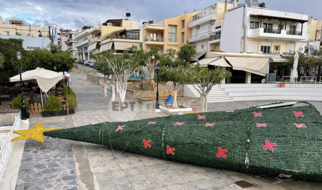 Από τη μανία του Byron δεν γλύτωσε ούτε το χριστουγεννιάτικο δέντρο της πόλης το οποίο είχε εγκατασταθεί στη λίμνη και αύριο είναι προγραμματισμένη η γιορτή όπου θα φωταγωγηθεί.