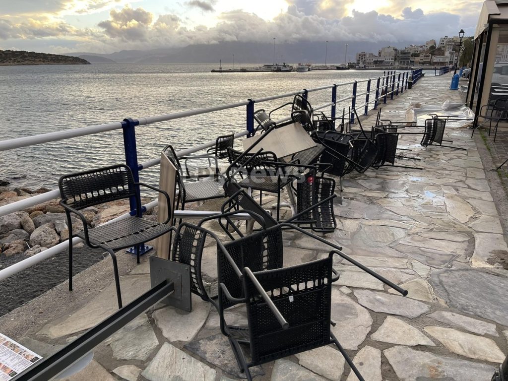 Με ένταση σφυροκόπησε η κακοκαιρία Byron το παραλιακό μέτωπο της πόλης του Αγίου Νικολάου. Γύρω στις τρεις το πρωί ριπές ανέμου έντασης 10 μποφόρ σάρωσαν την πόλη και ειδικά όλο το θαλάσσιο μέτωπο όπου βρίσκονται τα καφέ και τα περισσότερα καταστήματα εστίασης με αποτέλεσμα να σπάσουν ομπρέλες γλάστρες να πέσουν μέσα στη θάλασσα καρέκλες.