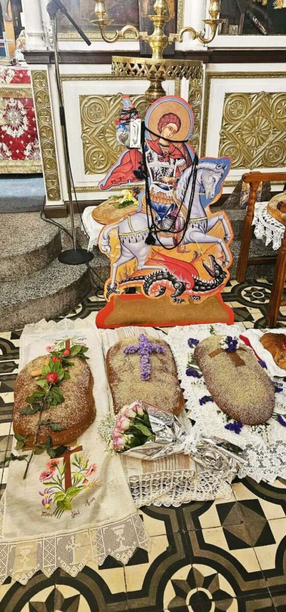 - Οικογένειες που έχασαν αγαπημένο πρόσωπο φτιάχνουν άρτους με σταυρό και λουλούδια, αναγράφοντας το όνομα του νεκρού.