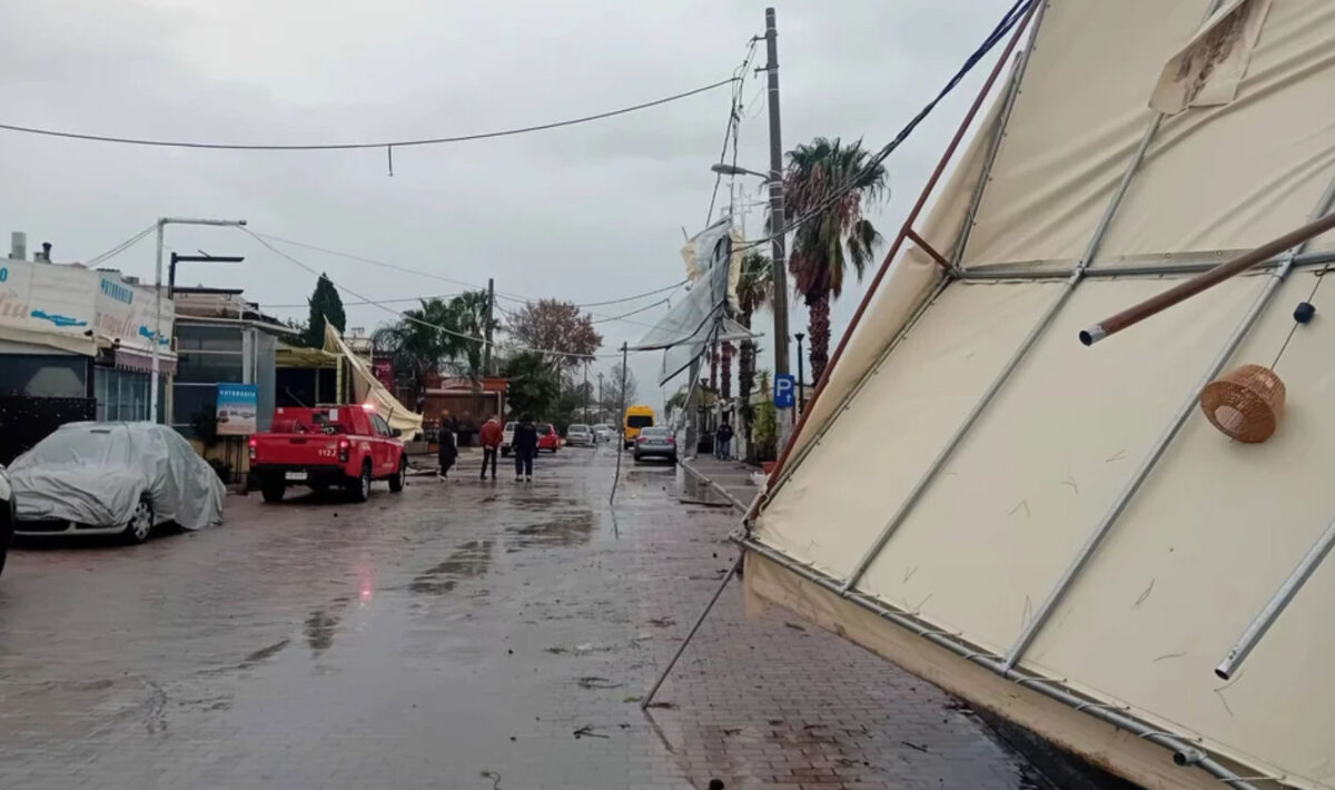 Ειδικότερα, σύμφωνα με το anatolika24.gr, οι δυνατές ριπές του ανέμου ξήλωσαν τέντες από καταστήματα στην Παραλία του Μαραθώνα, με τα αποκολλημένα τμήματα να παρασύρονται από τον αέρα, δημιουργώντας κινδύνους για πεζούς και οχήματα.