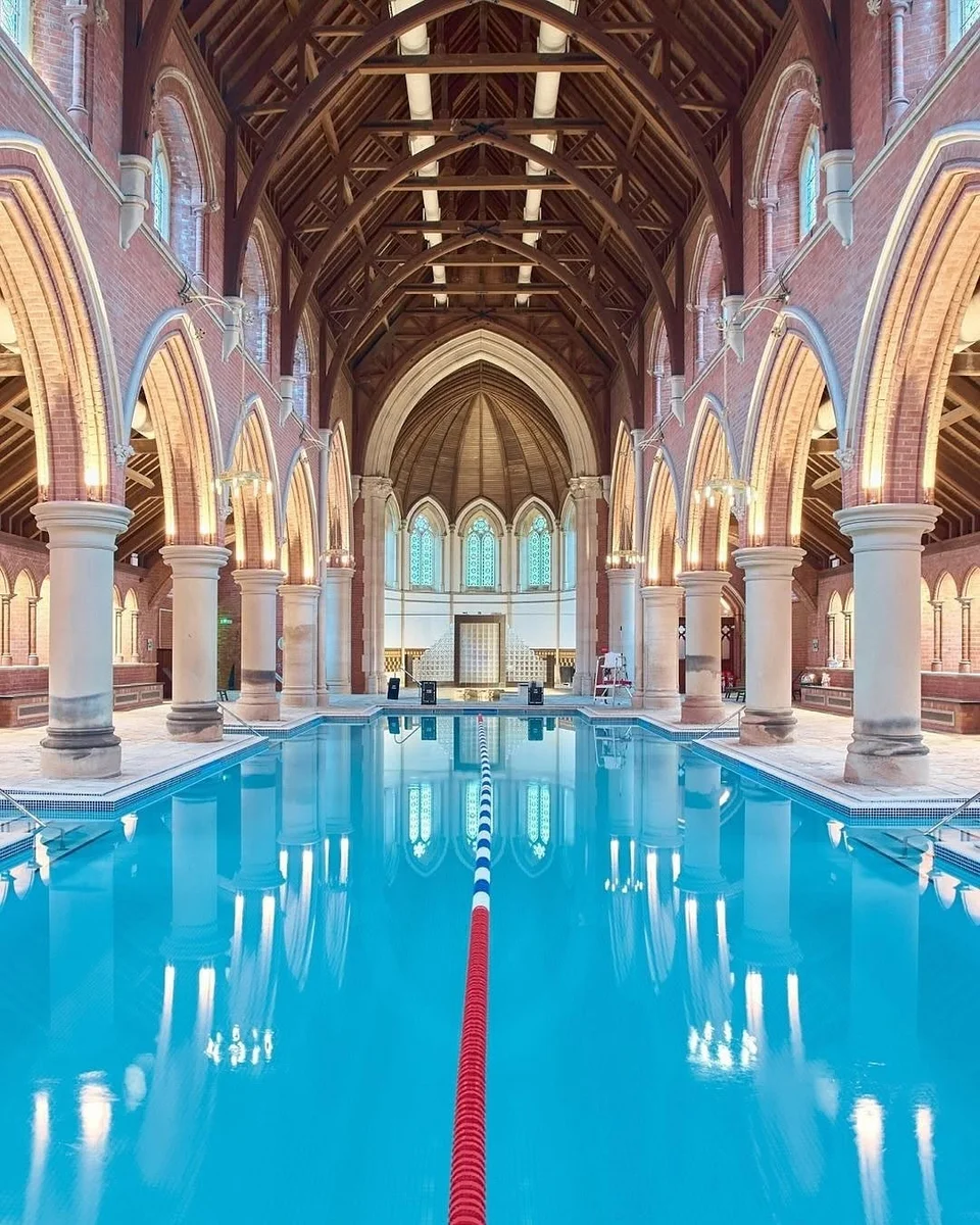 Ένας χώρος με ιστορία άνω του αιώνα, που άλλοτε φιλοξενούσε ψυχές σε θεραπεία, έχει πλέον μετατραπεί σε έναν τόπο απόλυτης γαλήνης. Το παλιό παρεκκλήσι του ιστορικού Ψυχιατρικού Νοσοκομείου Claybury στο ανατολικό Λονδίνο αναγεννήθηκε εντυπωσιακά, μεταμορφωμένο σε πολυτελή πισίνα του γυμναστηρίου Virgin Active, εντός του Repton Park Health Club.