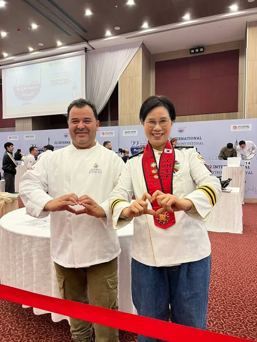 Η μαγειρική, η καλή κουζίνα, οι νόστιμες γεύσεις, φέρνουν τους ανθρώπους πιό κοντά-τους λαούς πιό κοντά, όπως αποδεικνύει και η φωτογραφία με τον Κρητικό Σεφ, Γιώργο Δαμιανάκη, από το Ζαρό και την Κορεάτισα ομόλογο του να καμαρώνουν δίπλα-δίπλα, και να χαίρονται μαζί για τη συμμετοχή τους στο International Gastronomy Festival της Κωνσταντινούπολης (17-20 Δεκεμβρίου) από το οποίο η Ελληνική αποστολή, η ομάδα του Γιώργου (Μάνος Χατζηδάκης, Ρένα Χανιωτάκη, Μάνος Αλεξάκης, Ηρώ Περουλάκη, Ειρήνη Γιγκλά) επέστρεψε με 7 χρυσά, 3 ασημένια & 2 χάλκινα μετάλλια!