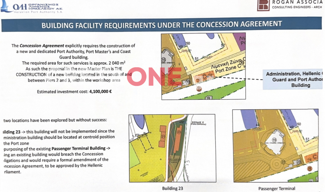 Αναφέρθηκε επίσης στην πρόταση που είχε εξεταστεί, ο υφιστάμενος επιβατικός σταθμός να στεγάσει τις υπηρεσίες του Λιμεναρχείου και να κατασκευαστεί νέος επιβατικός σταθμός. Όπως εξήγησε, η λύση αυτή απαιτούσε σύμβαση παραχώρησης και έγκριση από τη Βουλή, κάτι που θα οδηγούσε σε μεγάλες καθυστερήσεις.
