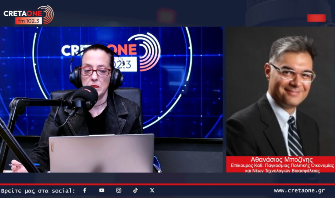 Ο Επίκουρος Καθηγητής «Παγκόσμιας Πολιτικής Οικονομίας και Νέων Τεχνολογιών – Βιοασφάλειας», μιλώντας στο Cretaone 102.3 και στην εκπομπή «Μαζί» με τη Μαρία Ορφανάκη αναλύει τις γεωπολιτικές επιδιώξεις, τον ψηφιακό πόλεμο και τον ρόλο της Ελλάδας, επισημαίνοντας τη σημασία της τεχνητής νοημοσύνης στις σύγχρονες στρατιωτικές επιχειρήσεις.