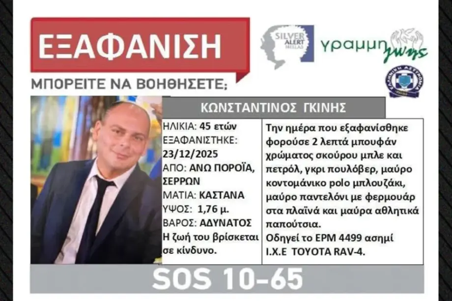 25.12.2025, 11:26 Άκαρπες οι έρευνες για τον διοικητή του Πυροσβεστικού Σώματος – Στο μικροσκόπιο το smartwatch του