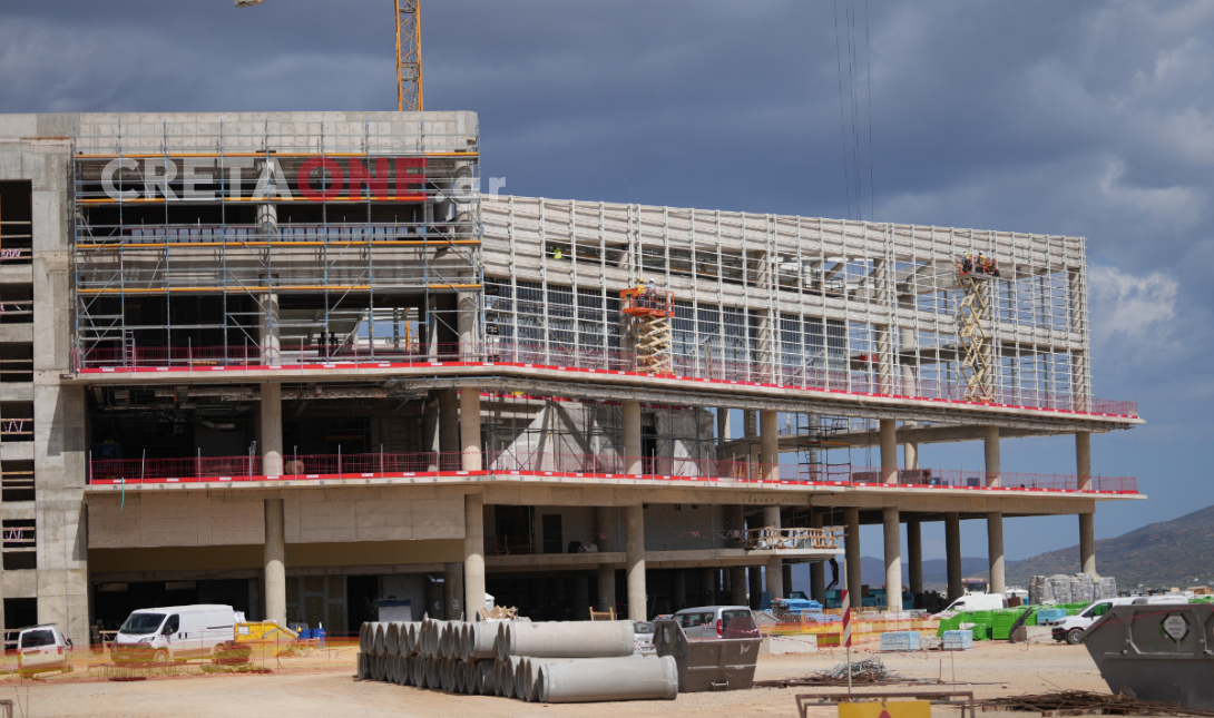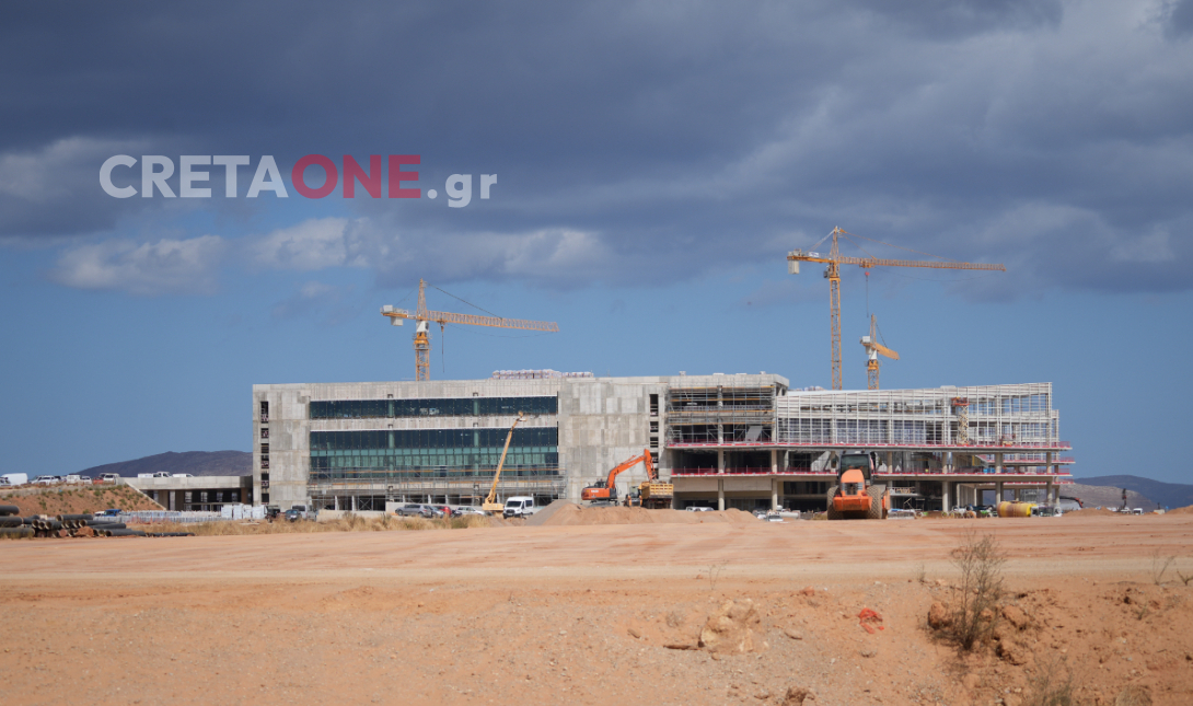 Οι κατασκευαστικές εργασίες για το νέο Διεθνές Αεροδρόμιο Ηρακλείου Κρήτης στο Καστέλλι Πεδιάδας -το οποίο θα είναι το δεύτερο πιο πολυσύχναστο της χώρας- βρίσκονται πλέον σε προχωρημένο επίπεδο, με τις βασικές κτηριακές υποδομές, να ξεπροβάλλουν ήδη με επιβλητικό τρόπο.