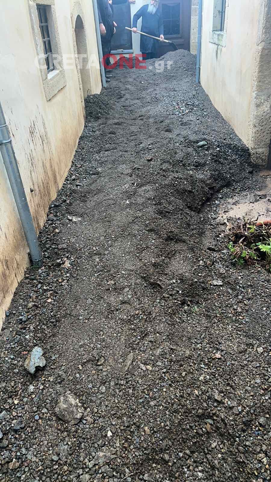 Οι ηγούμενοι έμειναν ξάγρυπνοι όλο το βράδυ από την κακοκαιρία βλέποντας την Μονή να «πνίγεται» από την λάσπη και το νερό.
