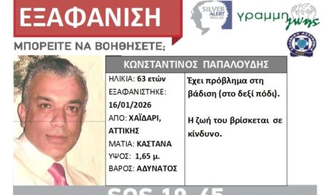 Συναγερμός στην Αττική για την εξαφάνιση 63χρονου