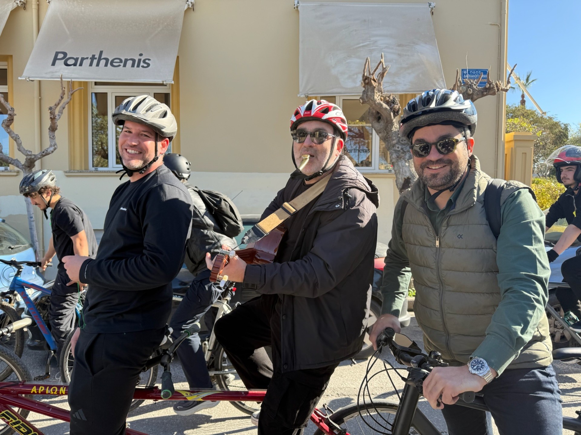 Τις ποδηλατικές διαδρομές ακολούθησαν ανάμεσα στα παιδιά, ο Δήμαρχος Χανίων, Παναγιώτης Σημανδηράκης, ο Αντιδήμαρχος Παιδείας, Αντώνης Βαρδάκης και ο Αντιδήμαρχος Πολιτισμού, Γιάννης Γιαννακάκης ο οποίος μάλιστα έδωσε και τον «ρυθμό» της δράσης ποδηλατώντας με μια κιθάρα.