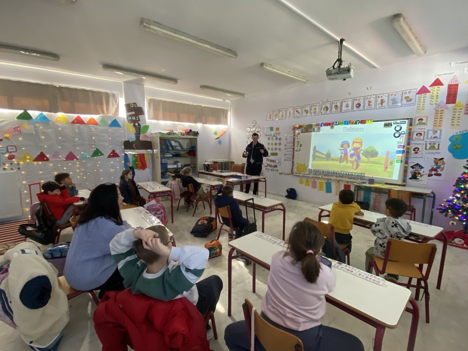 - Οι μαθητές ενημερώθηκαν με κατανοητό τρόπο για τους κανόνες κυκλοφορίας και την ασφαλή μετακίνηση από τους εκπροσώπους της Τροχαίας.