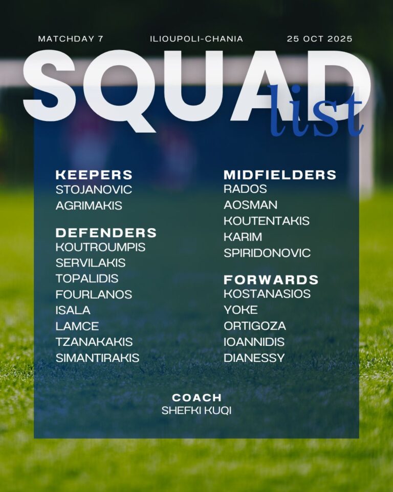 Εκτός αποστολής έμειναν οι τραυματίες Οικονομάκης και Νεκούλ, ο τιμωρημένος Μεγιάδο, όπως επίσης και οι Φανουράκης, Πανεράς, Κολτσίδας, Πρεβεζιάνος, Μαυρομάτης, Νασέρ και Νίλι.