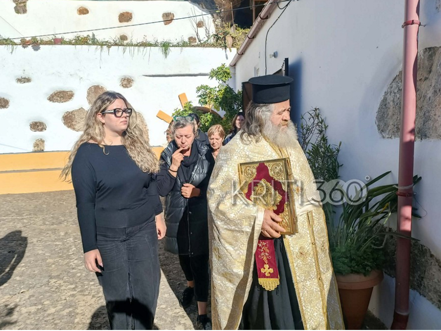 Στη μονή Αγίων Πατέρων συγκεντρώθηκαν πιστοί, ενώ την ακολουθία τέλεσε ο π. Ευτύχιος Ανδρουλάκης.