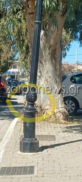 Επικίνδυνες καταστάσεις στην Χρυσοπηγή των Χανίων, όπου μια κολώνα φωτισμού έχει προκαλέσει ανησυχία και τρόμο σε διερχόμενους πολίτες και οδηγούς, καθώς σε ένα σημείο της έχει σπάσει.