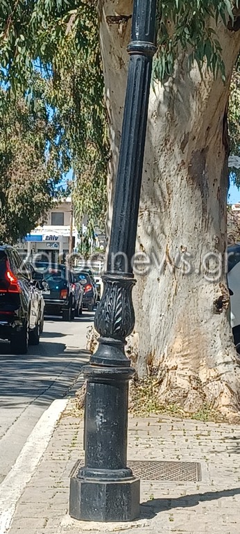 Επικίνδυνες καταστάσεις στην Χρυσοπηγή των Χανίων, όπου μια κολώνα φωτισμού έχει προκαλέσει ανησυχία και τρόμο σε διερχόμενους πολίτες και οδηγούς, καθώς σε ένα σημείο της έχει σπάσει.