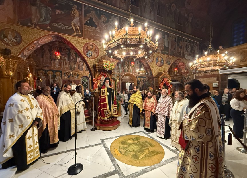 Με λαμπρότητα επισημότητα και μεγαλοπρέπεια τελέστηκε την Κυριακή 9 Νοεμβρίου στον Ιερό Ναό του Αγίου Νεκταρίου Παχιανών που διακονούν ο Παν/τος Αρχιμ. του Οικουμενικού Θρόνου Αμφιλόχιος Παπαγιαννάκης, Καθηγούμενος της Ιεράς Πατριαρχικής και Σταυροπηγιακής Μονής Αγίας Τριάδος των Τζαγκαρόλων και ο π. Εμμανουήλ Μηλιάκης, η Αρχιερατική θεία Λειτουργία προς τιμήν της Εορτής του Αγίου Νεκταρίου.