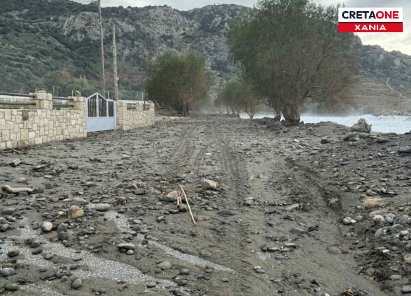 Όπως φαίνεται στο βίντεο, ο παραλιακός δρόμος του χωριού έχει γεμίσει φερτά υλικά, με αποτέλεσμα να έχει γίνει απροσπέλαστος, για τους κατοίκους.