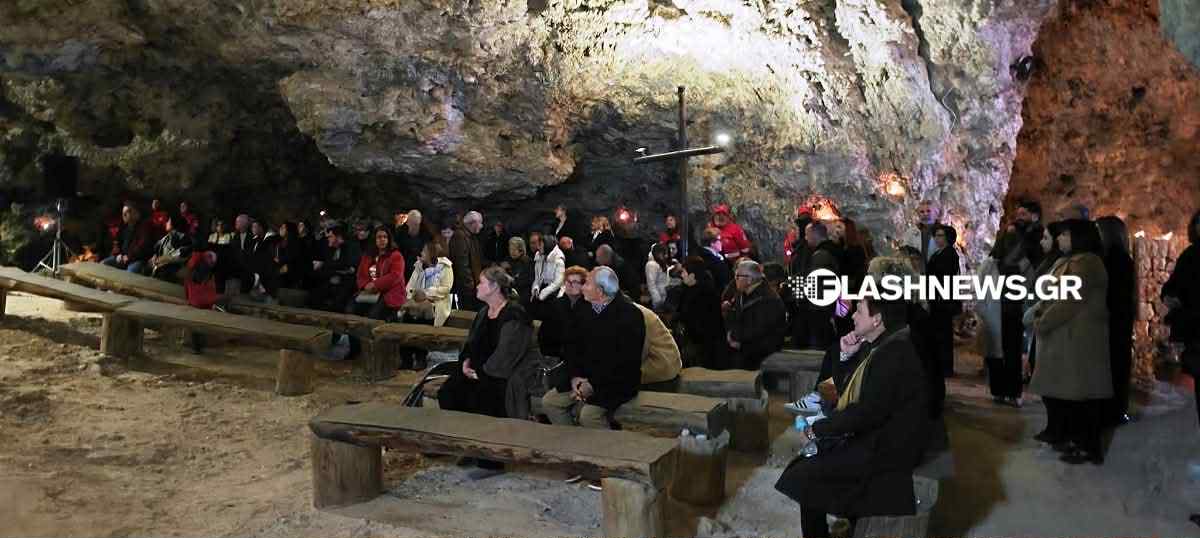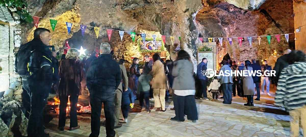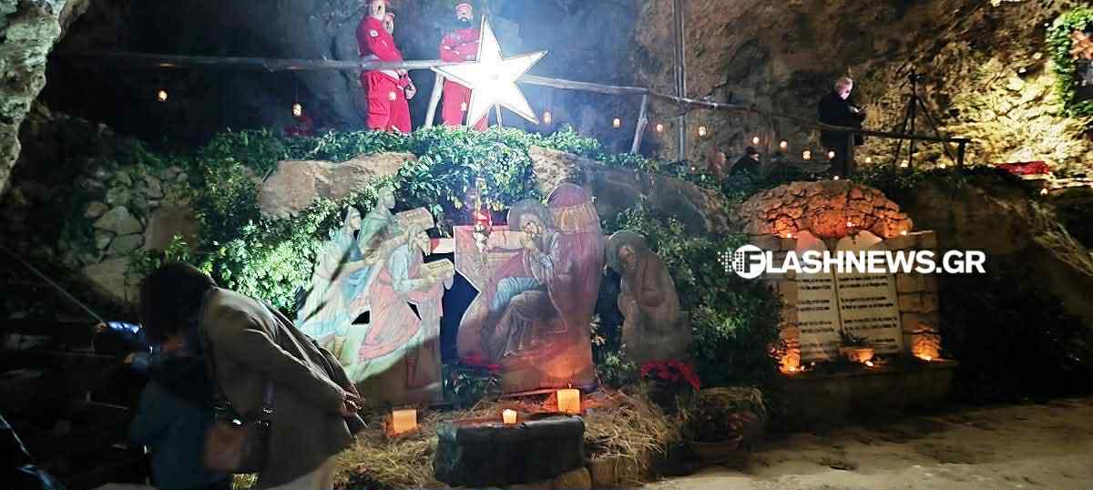 Σε κλίμα θρησκευτικής ευλάβειας πιστοί παρακολούθησαν την αναπαράσταση της θείας γέννησης με τη φάτνη, το θείο βρέφος, την Παναγία, τον Ιωσήφ, τα ζώα και το αστέρι της Βηθλεέμ και βίωσαν την καθηλωτική ατμόσφαιρα της παραμονής των Χριστουγέννων μέσα στο σπήλαιο της Μαραθοκεφάλας.