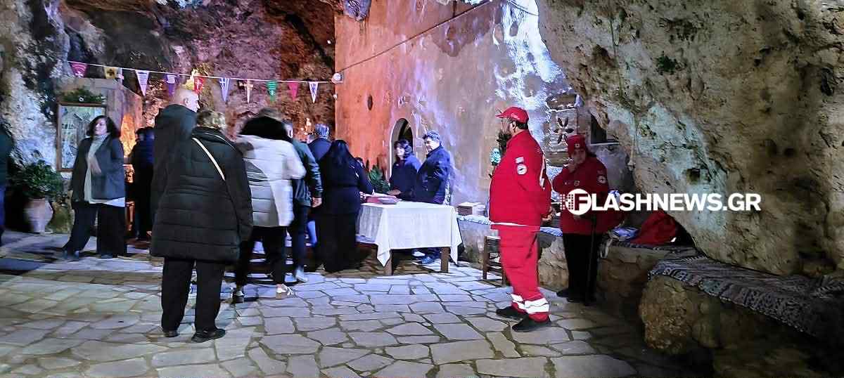 Eκατοντάδες πιστοί κατέφθασαν για μία ακόμη χρονιά στο σπήλαιο του Άη Γιάννη στη Μαραθοκεφάλα Χανίων για να παρακολουθήσουν τη θεία λειτουργία των Χριστουγέννων.