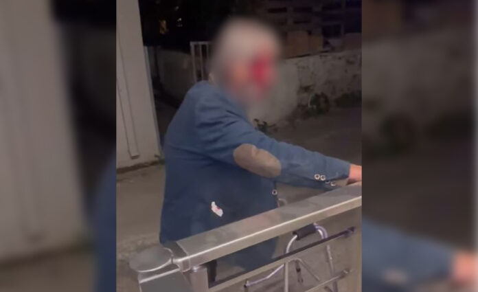 Αίματα έρρεαν από το κεφάλι του στο πρόσωπό του.