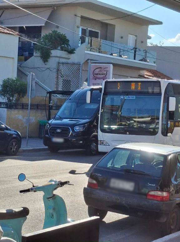 Κυκλοφοριακό πρόβλημα προκαλεί, σε κάτοικους και επισκέπτες της Αγίας Μαρίνας, ένα τουριστικό βαν το οποίο στάθμευσε μπροστά από την κεντρική στάση του λεωφορείου.