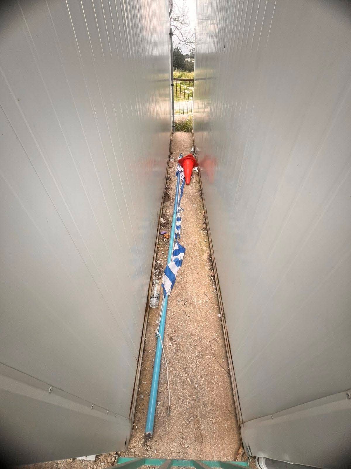Εικόνες βανδαλισμού, καταστροφών, σπασμένες υδρορροές, σκισμένη και πεταμένη η σημαία με τον ιστό, ροδιές, σπασμένες τζαμαρίες