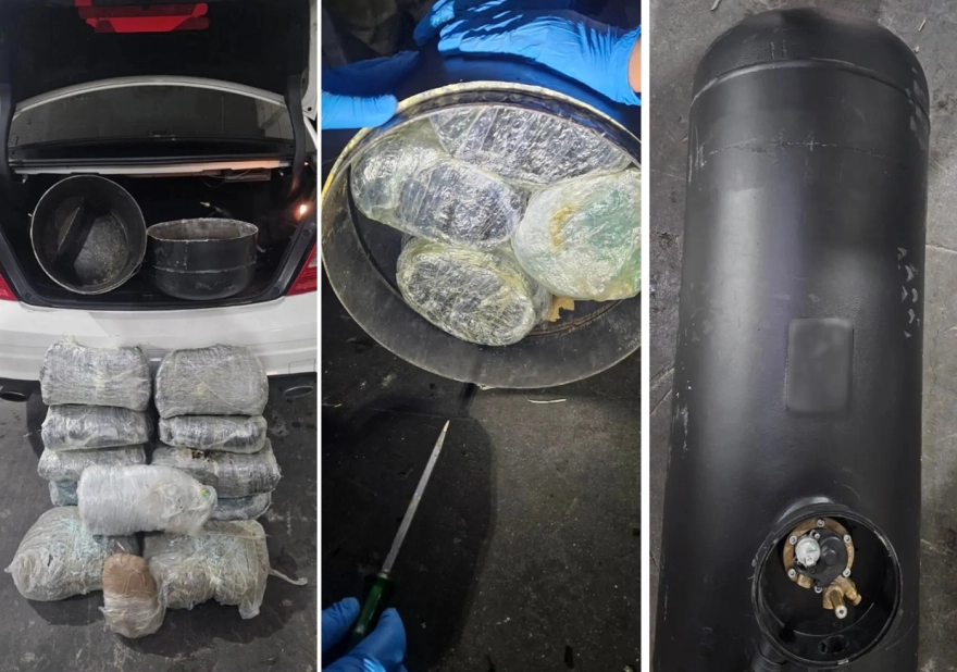 Κατά την έρευνα βρέθηκαν επιμελώς κρυμμένα μέσα στη δεξαμενή καυσίμου (υγραερίου) και κατασχέθηκαν 12 δέματα ακατέργαστης κάνναβης, βάρους 23 κιλών και 450 γραμμαρίων, όπως αναφέρεται σε ανακοίνωση της ΕΛ.ΑΣ. Επιπλέον, από την κατοχή του κατασχέθηκαν ένα κινητό τηλέφωνο, 1.000 ευρώ και το αυτοκίνητο, ως μέσο τέλεσης αξιόποινων πράξεων.