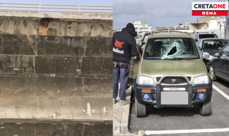 Ηράκλειο: Κομμάτι τσιμέντου έπεσε από γέφυρα πάνω σε αυτοκίνητο - Από θαύμα δεν θρηνήσαμε θύματα - Δείτε εικόνες
