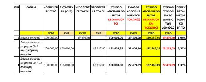 - Β) δάνειο ισοδύναμο 200.000 ευρώ (312.000 CHF) καλείται να επιστρέψει 344.487,18 ευρώ