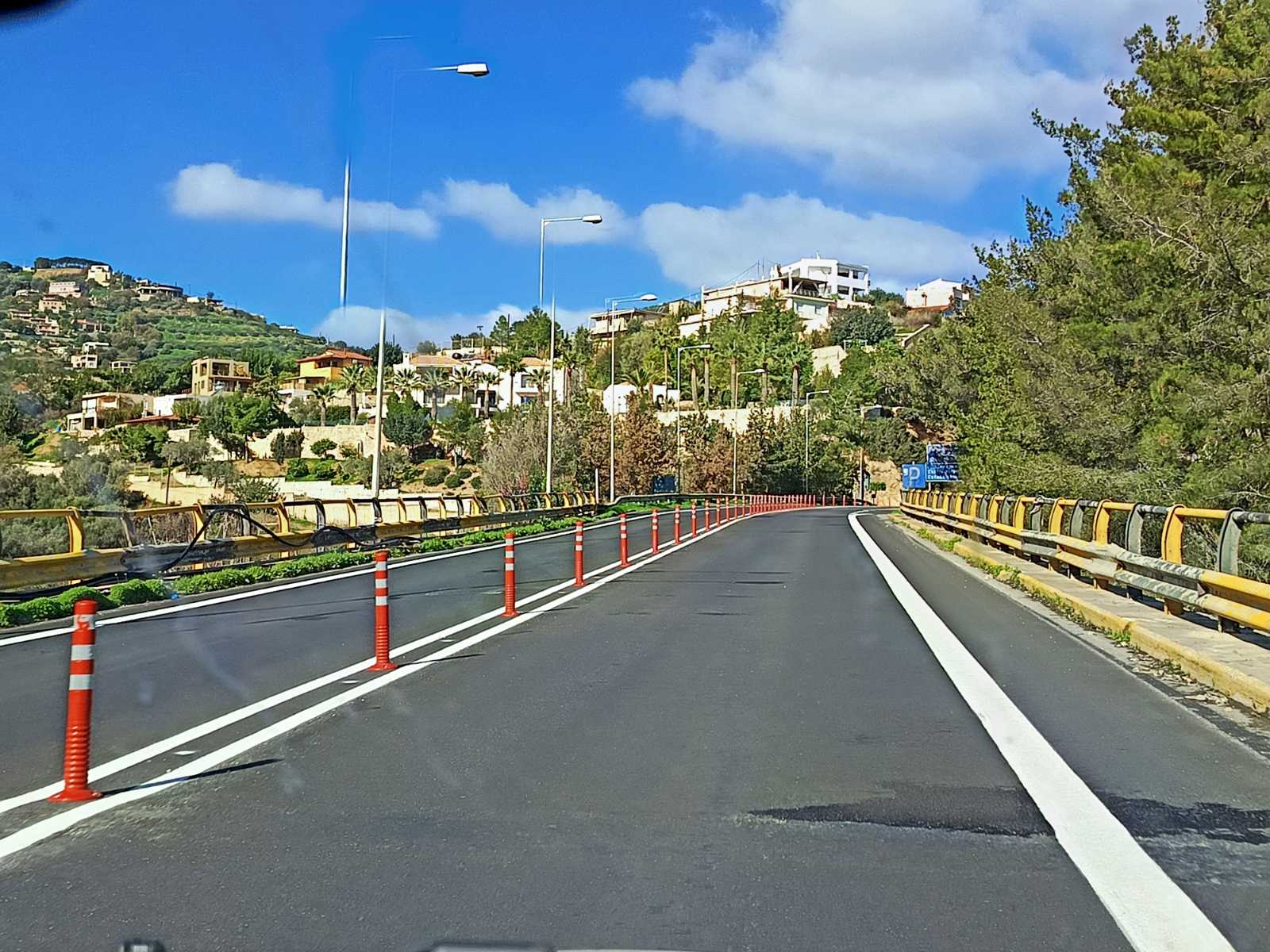 Νέα οριζόντια διαγράμμιση της οδού με τρεις λωρίδες κυκλοφορίας στο μεγαλύτερο μήκος και διαχωρισμός των κατευθύνσεων κυκλοφορίας με πλαστικά κολωνάκια.