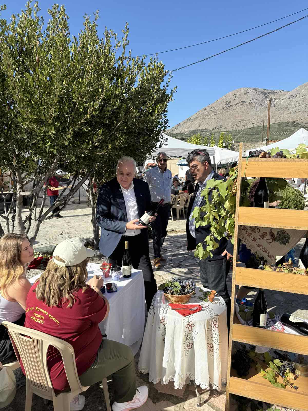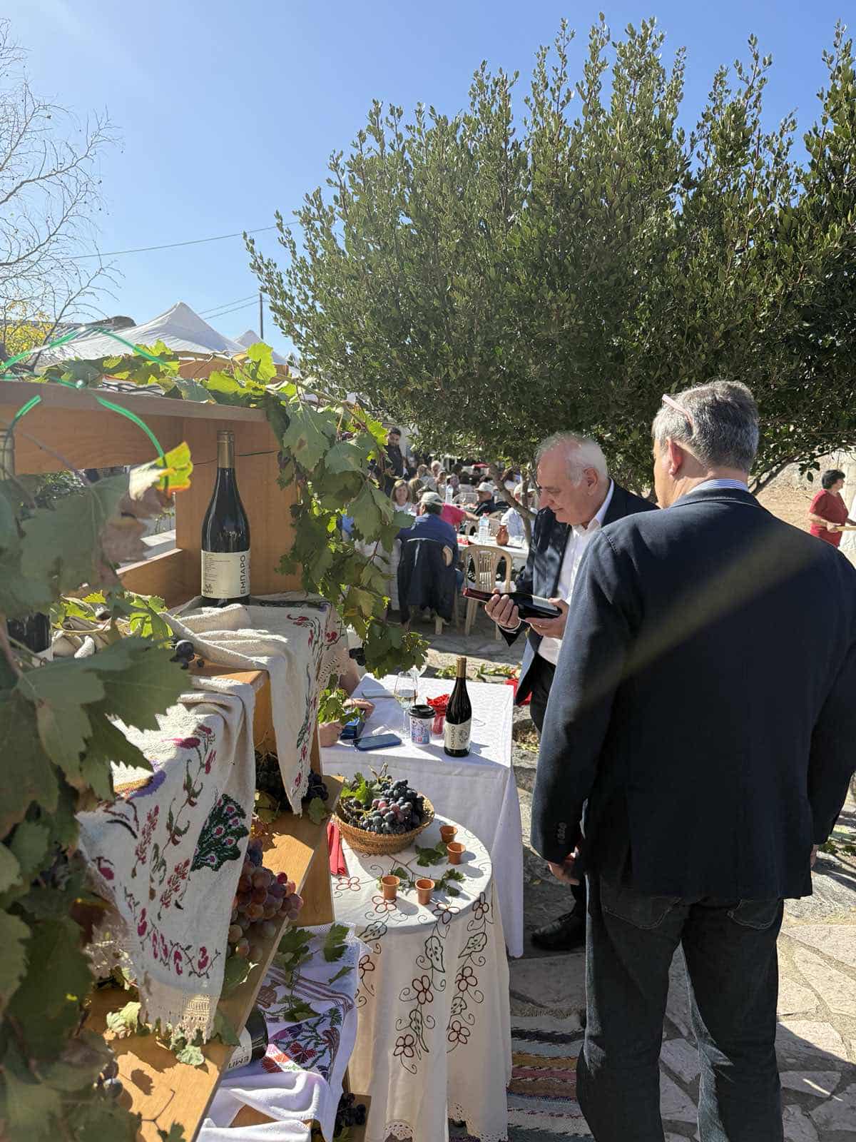 Εκεί, οι παραγωγοί είδαν το φρέσκο κρασί τους να ευλογείται, ενώ αμέσως μετά οι επισκέπτες είχαν την ευκαιρία να συμμετάσχουν στο άνοιγμα των φρέσκων κρασιών στον προαύλιο χώρο του ναού και να γνωρίσουν κρασιά από γνωστά οινοποιεία της Κρήτης.