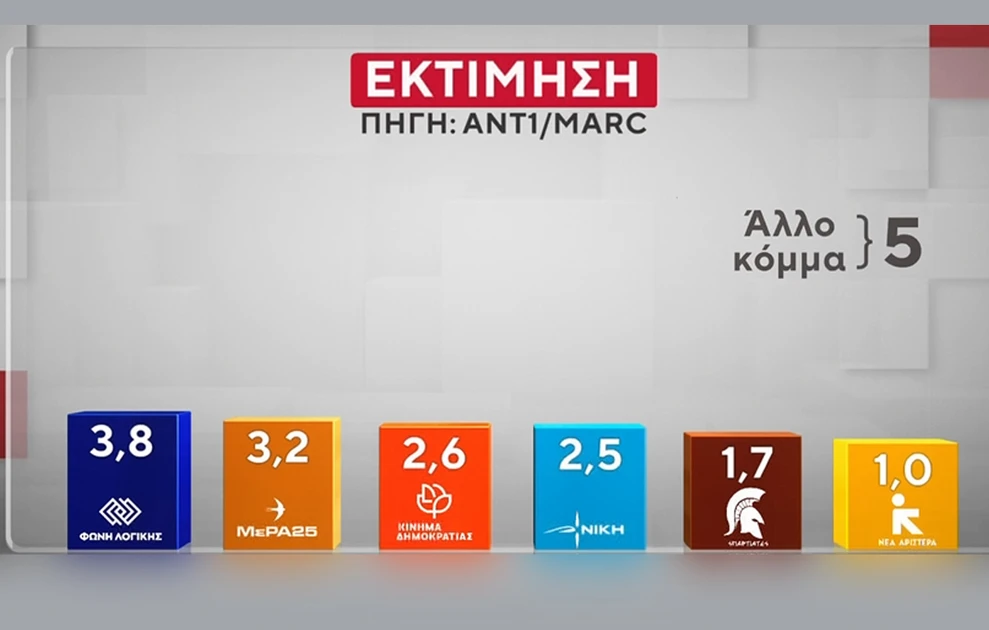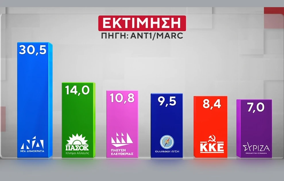 - Η Νέα Δημοκρατία προηγείται με 30,5% στην εκτίμηση ψήφου, με προβάδισμα 16,5 μονάδων από το ΠΑΣΟΚ.