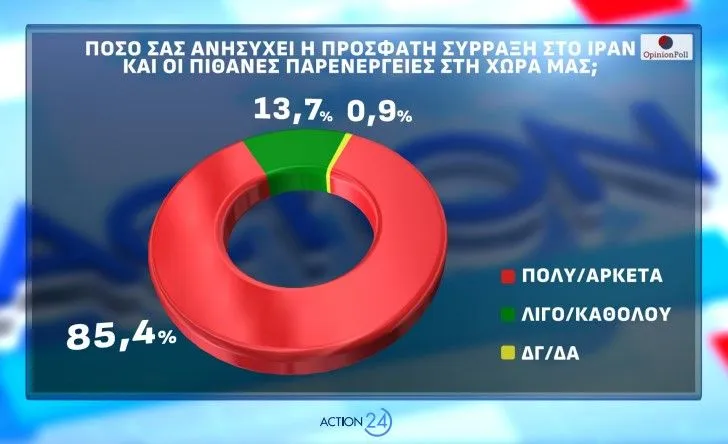 Οι συμμετέχοντες ρωτήθηκαν για το πόσο τους ανησυχεί η πρόσφατη σύρραξη στο Ιράν και τις πιθανές παρενέργειες στη χώρα μας.